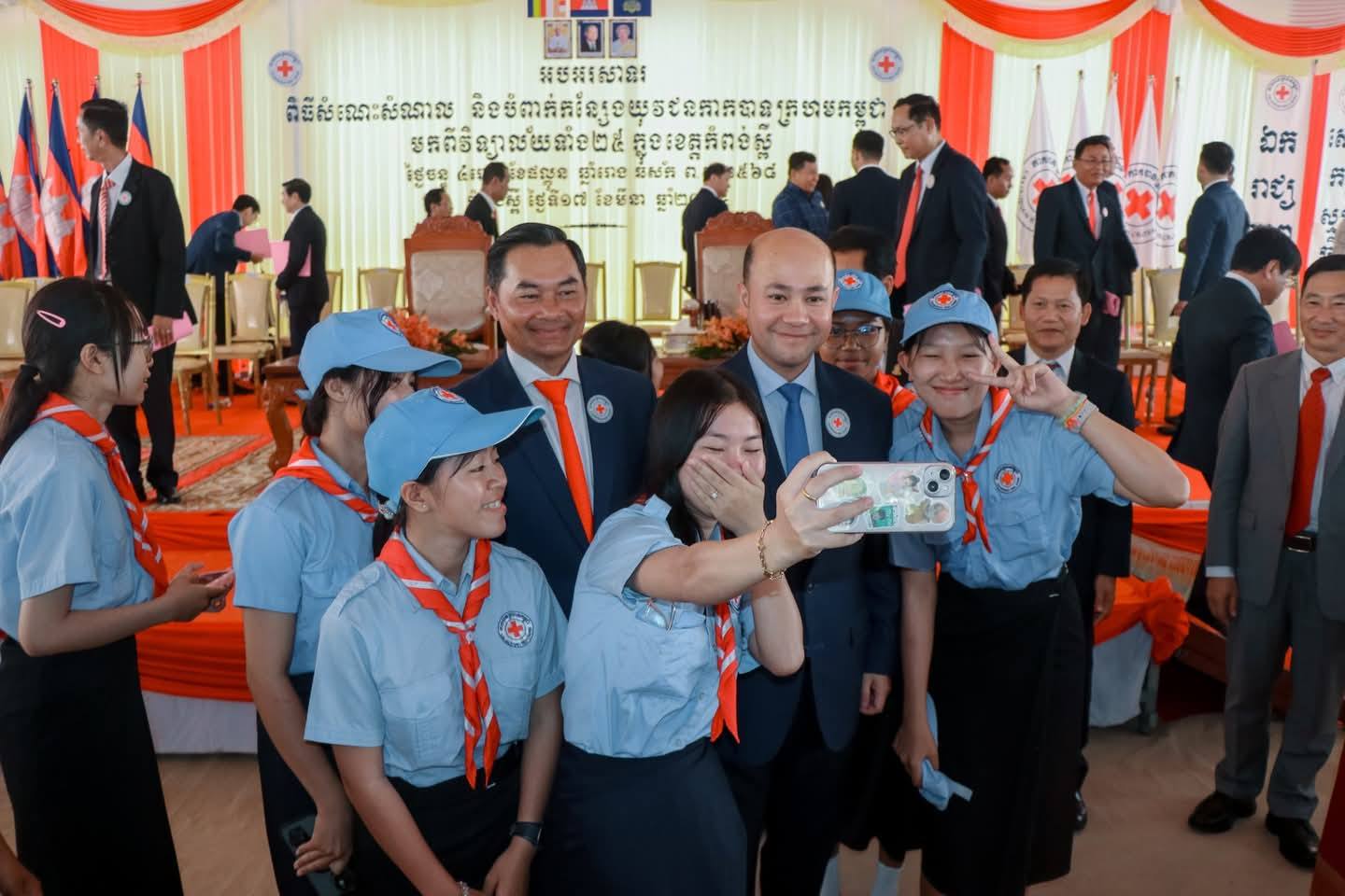 ឯកឧត្ដម ហ៊ុន ម៉ានី ឧបនាយករដ្ឋមន្ត្រី រដ្ឋមន្ត្រីក្រសួងមុខងារសាធារណៈ និងជាប្រធានកិត្តិយសគណៈកម្មាធិការសាខាកាកបាទក្រហមខេត្តកំពង់ស្ពឺ លោកជំទាវ ពុំ ច័ន្ទទ្ធីនី អគ្គលេខាធិការ កាកបាទក្រហមកម្ពុជា បានអញ្ជើញជាអធិបតីភាពដ៏ខ្ពង់ខ្ពស់ក្នុងពិធីបំពាក់កន្សែង ជូនយុវជនកាកបាទក្រហម មកពីវិទ្យាល័យទាំង ២៥ ក្នុងខេត្តកំពង់ស្ពឺ ។