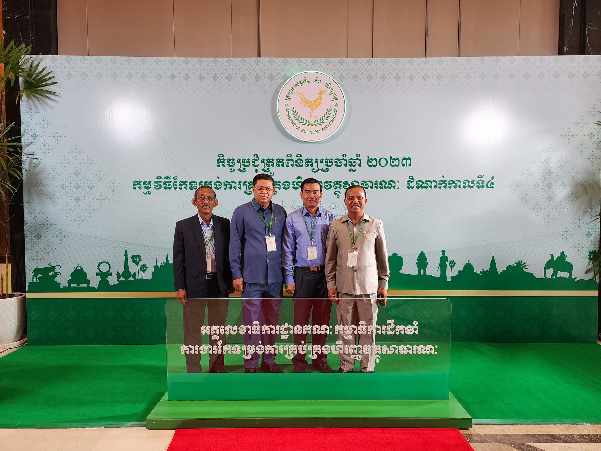 លោក ថន ប៊ុនថា ប្រធានមន្ទីរសេដ្ឋកិច្ចនិងហិរញ្ញវត្ថុខេត្ត បានអញ្ជើញចូលរួមក្នុងពិធីបើកកិច្ចប្រជុំត្រួតពិនិត្យប្រចាំឆ្នាំ២០២៣ នៃការអនុវត្តកម្មវិធីកែទម្រង់ការគ្រប់គ្រងហិរញ្ញវត្ថុសាធារណៈ ដំណាក់កាលទី០៤ ក្រោមអធិបតីភាពដ៏ខ្ពង់ខ្ពស់ ឯកឧត្តមអគ្គបណ្ឌិតសភាចារ្យ អូន ព័ន្ធមុនីរ័ត្ន ឧបនាយករដ្ឋមន្រ្តី រដ្ឋមន្ត្រីក្រសួងសេដ្ឋកិច្ចនិងហិរញ្ញវត្ថុ