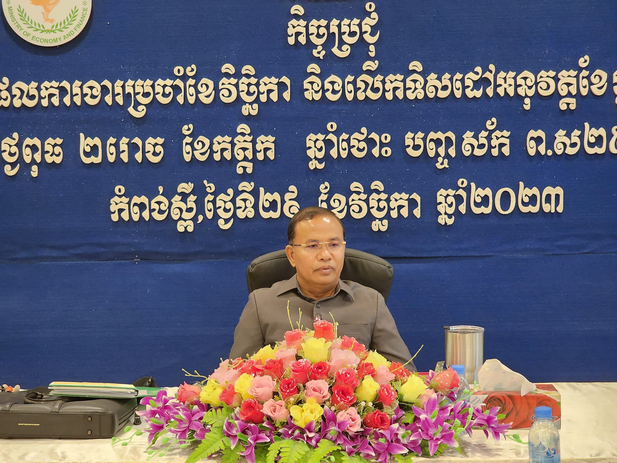 លោក ថន ប៊ុនថា ប្រធានមន្ទីរសេដ្ឋកិច្ច និងហិរញ្ញវត្ថុខេត្ត បានអញ្ជើញជាអធិបតីក្នុងកិច្ចប្រជុំបូកសរុបលទ្ធផលការងារប្រចាំខែវិច្ឆិកា និងលើកទិសដៅអនុវត្តខែធ្នូ ឆ្នាំ២០២៣ ដោយមានការចូលរួមពីសំណាក់លោកអនុប្រធានមន្ទីរ លោក-លោកស្រី ប្រធាន-អនុប្រធានការិយាល័យទាំង៥ ព្រមទាំងមន្រ្តីរាជការទាំងអស់នៃមន្ទីរសេដ្ឋកិច្ច និងហិរញ្ញវត្ដុខេត្ត។