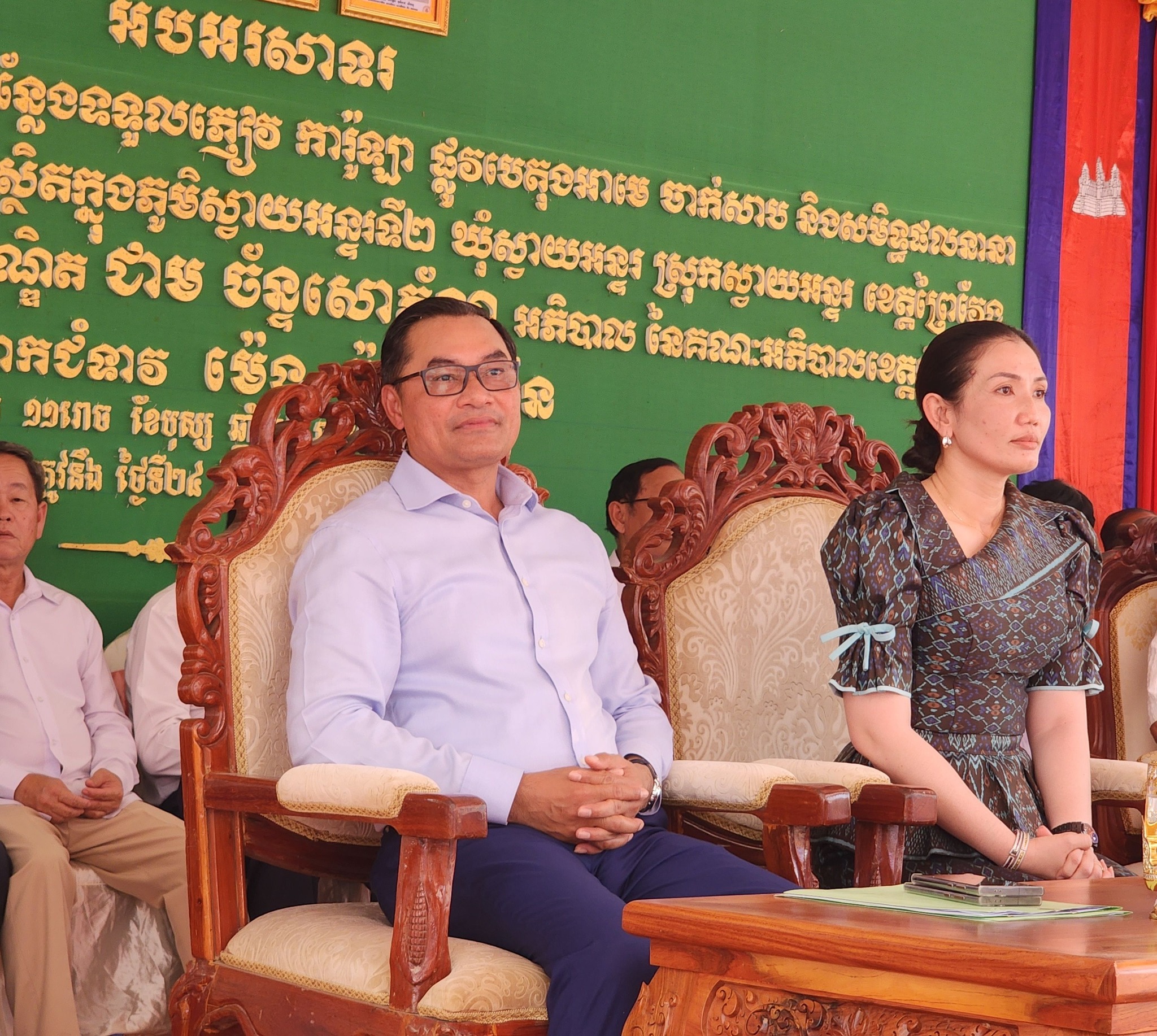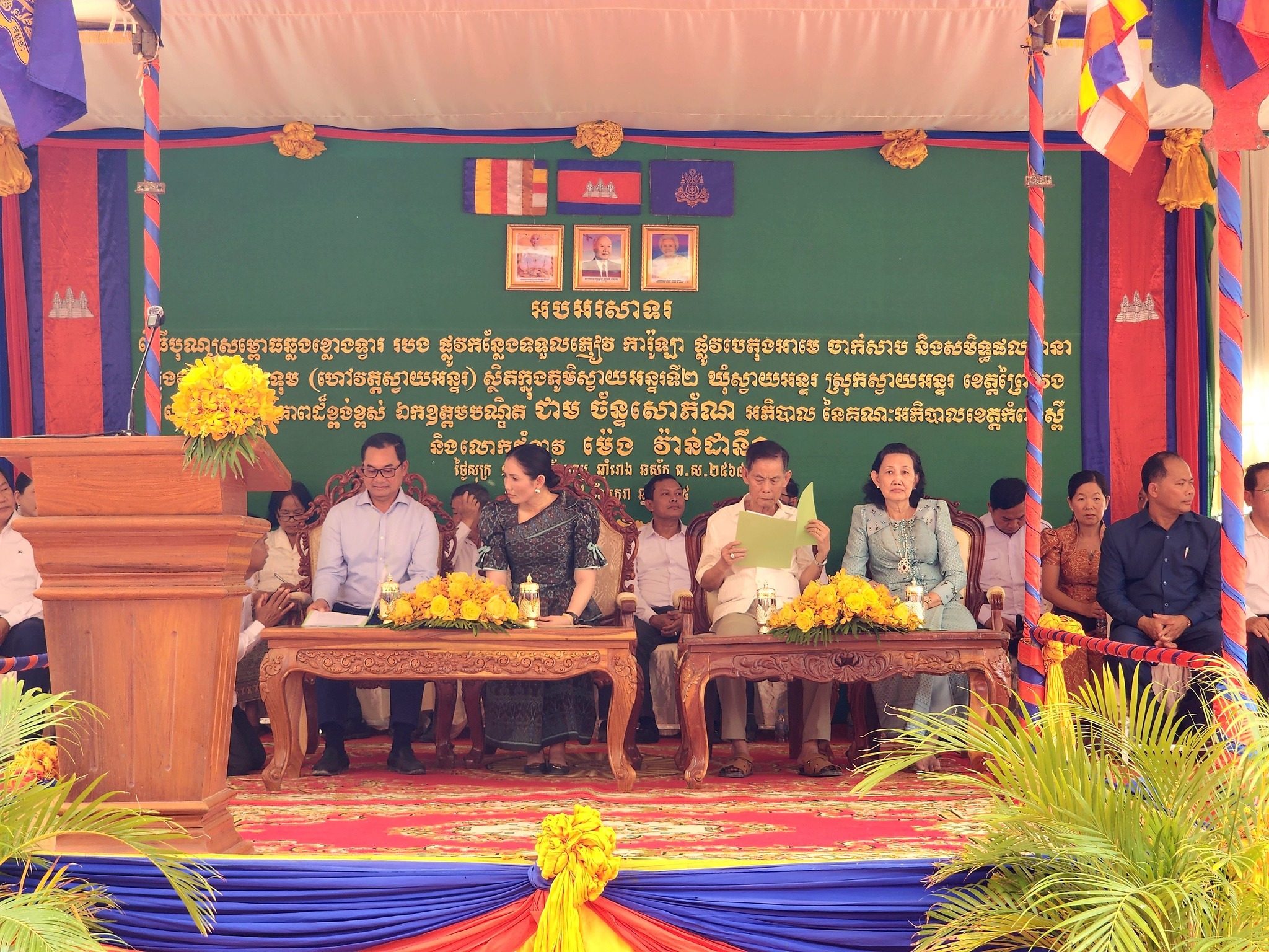 លោក ថន ប៊ុនថា ប្រធានមន្ទីរសេដ្ឋកិច្ចនិងហិរញ្ញវត្ថុខេត្ត បានអញ្ជើញចូលរួមអមដំណើរឯកឧត្តមបណ្ឌិតជាម ច័ន្ទសោភ័ណ អភិបាលនៃគណៈអភិបាលខេត្តកំពង់ស្ពឺ ព្រមទាំងលោកជំទាវ ក្នុងពិធីសម្ពោធឆ្លងខ្លោងទ្វារ របង ផ្លូវ កន្លែងទទួលភ្ញៀវ ការ៉ូឡា ផ្លូវបេតុង សាប និងសមិទ្ធផលនានា ក្នុងវត្តស្វាយបទុម ហៅវត្តស្វាយអន្ទរ ស្ថិតនៅភូមិស្វាយអន្ទរទី២ ឃុំស្វាយអន្ទរ ស្រុកស្វាយអន្ទរ ខេត្តព្រៃវែង។